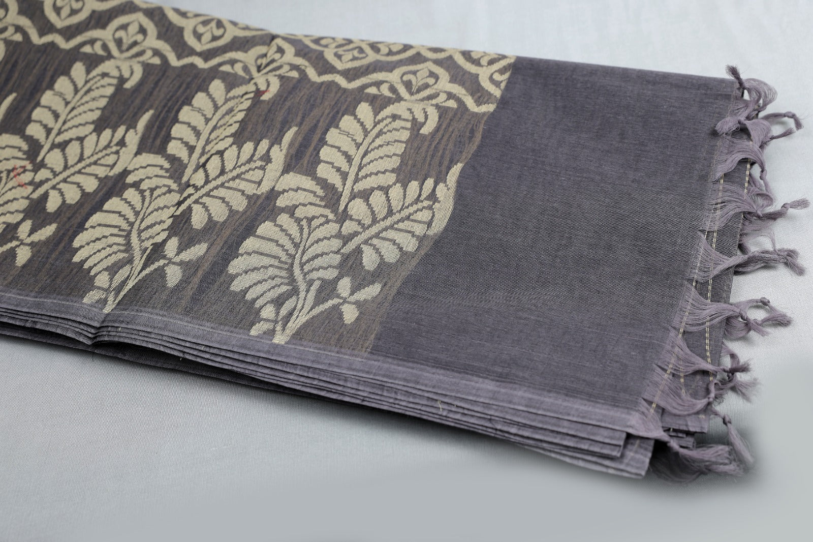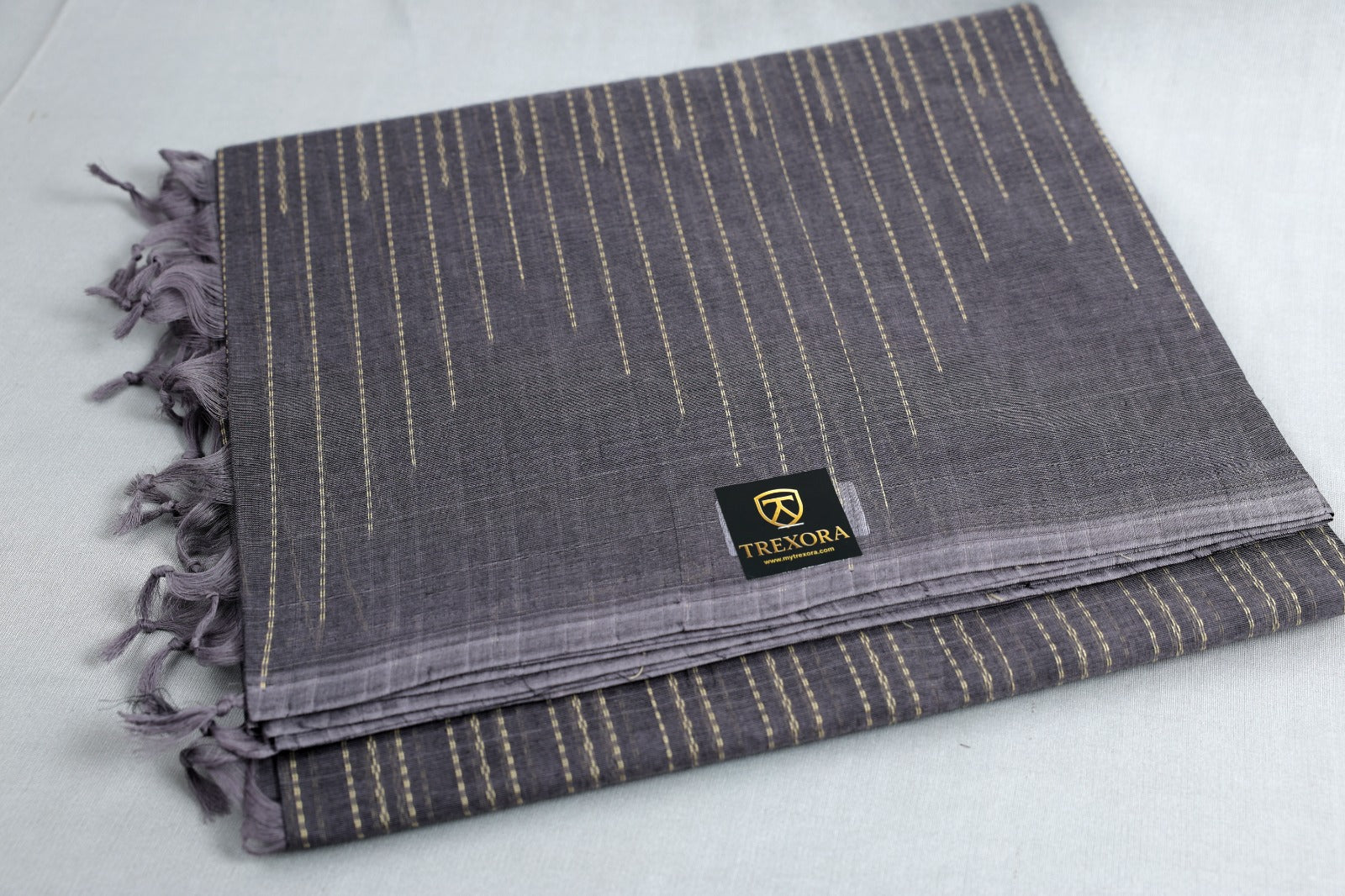 Trexora Grey Cotton Saree with Subtle Golden Stripes